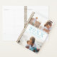 Un planificateur auquel vous pouvez ajouter trois de vos propres photos à un collage minimaliste en blanc et bleu. Ajoutez l'année en gros chiffres bleus, et ajoutez votre nom ou votre nom de famille !