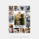 Célébrez vos souvenirs de famille ou de mariage avec ce magnifique collage photo en acrylique clair signe. Cette conception comprend une grande photo verticale centrale, ainsi que 2 photos verticales plus petites et 12 photos de style Instagram carré. Ajoutez votre nom en noir. Les mots "Amour - Bonheur" peuvent aussi être changés ou laissés tels quels. Les modèles simples facilitent la personnalisation. Utilisez l'outil de conception pour effectuer des modifications plus détaillées, comme la modification des polices. Trouver d'autres collages ici : https://www.zazzle.com/store/picturecollage