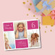 Ce design de collage photo branché a de l'espace pour trois photos. Vous pouvez ajouter le nom de la personne qui célèbre son anniversaire ainsi que son âge et sa date d'anniversaire. Au verso, le message court peut être modifié si vous le souhaitez.