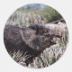 Collared peccary (javelina) yawning amid flowering classic round sticker