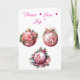 Célébrez la beauté de la saison avec cette carte de Noël élégante avec trois grandes billes roses ornées de feuillage rose et vert festif. Un design de vacances chic et féminin, parfait pour envoyer des voeux de Noël chaleureux à des amis, à des familles et à des proches.