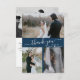 Moderne, Élégant, Minimaliste Marine Main Lettered Mariage 3 Photo Collage Carte de remerciements. Modèle mariage élégant avec trois (3) photos sur le devant et une (1) photo sur le côté arrière. Avec le texte "merci" dans une tourbillonnant main lettrée police de script de typographie en blanc sur arrière - plan bleu marine. Personnalisez le nom personnalisé et le message de remerciement. Si vous préférez écrire votre note à la main, supprimez simplement l'exemple de texte pour gagner de l'espace. Si vous avez besoin d'aide ou d'un article correspondant, veuillez contacter le concepteur !