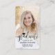 For family and friends who would like to give a cash gift to the graduate, a cute "College Pizza Fund" card with a scannable QR code provides a convenient mobile payment app option. The small business card size makes these enclosure cards easy to include with graduation announcements, set out at a graduation party, or hand out upon request. People who prefer contactless payment will appreciate the option to gift money from their digital wallet via their smartphone or tablet. The photo and wording on this template are simple to personalize and the colours are easy to change using the Zazzle design tool. The modern black and white design features handwritten style script calligraphy with a mortar board cap, elegant classic typography, and one photo of your choice, such as a senior picture or image from the commencement ceremony. This graduation enclosure card makes a unique and funny addition to a special day celebration. Congratulations to the graduate!