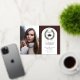 Classy and elegant with the "wow" factor of real gold foil with a dark maroon background on front and a dramatic dark maroon and gold-toned (not foil) marble look background on back, this college or university graduation announcement features your photo on left and a graduation cap surrounded by a laurel wreath on right in real foil detailing. Your class year and name are also accented in real foil, along with a highlight foil line surrounding the white arched background.