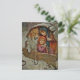 Vintage Christmastime image of Victorian children playing in the snow with their dog. Cute doghouse is made from a whiskey barrel! Fine art from 1898 by Arthur Elsely.