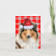 Collie Christmas Dog Red Plaid Christmas Holiday Card