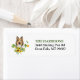 Le côté gauche de ces étiquettes d'adresse de retour présente l'image d'un beau chien Collie parmi des tournesols épars et des feuilles d'eucalyptus. Votre texte personnalisé est en vert et noir à droite.