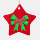 Collie Rough Red Dog & Green Bow Christmas Ceramic Ornament