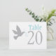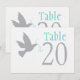 Colombe grise avec des numéros de table de mariage