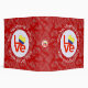 The Colombian LOVE FLAG. Like the others in Auntie Shoe's The LOVE Series, the word LOVE is featured in red letters inside a white, fractal-style circle. The circle sits on a red, fractal-style background. Perfect for Valentine's Day or any special time.