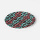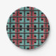 Colonization round and square paper plates. Colonization is an abstract and grunge design created by Vexenwraith and consists of red, black, and turquoise lines running vertically and horizontally on a black background.