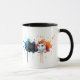 A stylish white mug with a black rim and handle, featuring three adorable cats in a colorful splash-style design. Perfect for cat lovers to enjoy their favorite hot drinks while adding a vibrant artistic touch to the kitchen or office. Durable, modern, and makes a thoughtful gift for friends and family.