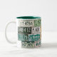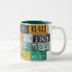 Exclusive Coffee Mug with a collection of authentic and unique Colorado licenses plates, including a Montrose motorcycle plate. With Hunter Green accents.