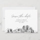 Modern Colorado Springs black and white save the date invitation. The front showcases a stunning sketch, setting the perfect tone for your wedding day. Add your own photo to the back and customize the text to make it your own. Enter the Zazzle design tool for additional design customizations.