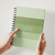 Personalized Colorblock Notebook with Horizontal Stripes in Sage Green and Olive Tones. Featuring a sleek colorblock design, the notebook showcases five horizontal stripes in soft sage, muted olive, and pale green hues — evoking a natural and calming aesthetic. You can effortlessly personalize the cover by adding your name, making it a thoughtful and elegant gift.
