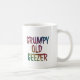 Lumineuse lettrage multicolore fait pour apparaître légèrement 3D, GRUMPY OLD GEEZER. Le design est répété des deux côtés de la tasse. Montré contre un arrière - plan blanc clair - vous pouvez ajouter une couleur arrière - plan derrière le design est que vous voulez.