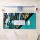 Ce tapis de bureau est destiné aux amateurs de design marbré. Le design est un design abstrait en marbre noir + turquoise avec un triangle turquoise et une bande noire. Un design simple et cool pour votre déclaration personnelle. Il est personnalisable avec votre nom ou monogramme. Hobinishop