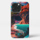 A skull head has been completely colored in an abstract style to bring you into the world of creativity and surreal design, in the style of photo-realistic landscapes, tropical landscapes, futuristic realism, pixelated realism, light crimson and sky-blue, surrealistic dreamscapes