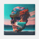 A skull head has been completely colored in an abstract style to bring you into the world of creativity and surreal design, in the style of photo-realistic landscapes, tropical landscapes, futuristic realism, pixelated realism, light crimson and sky-blue, surrealistic dreamscapes