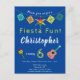 Cette carte postale colorée d'invitation à la fête d'anniversaire comporte une chaîne de papier découpé coloré avec une jolie piñata suspendue au centre. Amusez-vous avec cet invitation de fête d'anniversaire pour un garçon qui a une maraca et une guitare. Cette carte présente des couleurs vives avec un arrière - plan bleu foncé et des motifs géométriques colorés sur le dos.