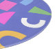 Colorful abstract geometric pattern featuring bright shapes including circles, arches, rectangles, triangles, and squiggles on a bold background. Modern playful design inspired by retro Memphis style with vibrant gradients and fun scattered elements, perfect for prints, textiles, backgrounds, and creative projects.
