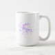 This colorful abstract neon splash coffee mug features a vibrant modern art design on a dark background.
