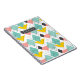 Colorful abstract retro shapes 90's pattern, notebook. Notebook features abstract colorful diamonds and triangles in gray, pink, yellow and teal pattern with a single template text line for name or other text on matching gray label.