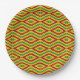 Colorful African Kente pattern in bright yellow, maroon and green.