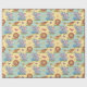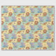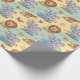 Colorful animal-themed wrapping paper with a playful pattern of cartoon lions, elephants, and zebras against a pastel yellow and blue background.