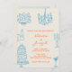 Colorful Blue Orang Hand Drawn Whimsical Wedding Invitation