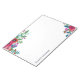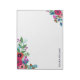 White notepad with beautiful bouquets of bohemian flowers in two of the corners in pink, purple, and blue. Add your name in modern navy blue letters.