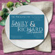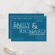 This Design Features a Deep Teal Background and a softer, blue Text. The text combination is a mix of bold and calligraphy. Perhaps the best part about this Invitation is that is comes in multiple colors, so you can mix and match different invitation colors with your other wedding stationary, but everything is designed to be cohesive, no matter what color you pick. We wanted something fun and going "full color wheel" seemed to be the ticket. We home you enjoy this invitation and the coordinating items available in our store.