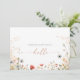 Announce the wonderful news to friends, family and loved ones about your precious miracle long awaited arrival with this colorful boho wildflower photo pregnancy card. The design features pink, purple, blush, yellow, dusty blue, red, burgundy meadow wild flowers assembled in a seamless and delightful floral pattern, evoking natural beauty. An elegant calligraphy script that reads "hello" in pastel wood, an ultrasound photo, a clean white space to add your baby's name and due date give this template a charming aesthetic.