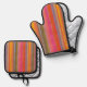Colorful Charcoal Boho Stripes Oven Mitt & Pot Holder Set