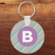 Colorful Diagonal Candy Stripes Purple Monogram Keychain
