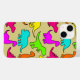 This phone case has a novelty design of dinosaurs scattered across the design.