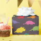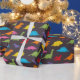 A cute colorful dinosaur patten of familiar dinosaurs in the colors of the rainbow. Perfect for wrapping presents for kids who love dinosaurs.