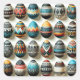 Art of egg decoration with intricate patterns inspired by cultures around the world. Each egg boasts a unique design, from tribal to modern geometric motifs, in a rich palette of earthy tones and vibrant accents. Ideal for a worldly Easter celebration or as a beautiful display of unity and diversity in your home.