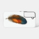 A detailed feather with rich gradient colors from blue to orange.