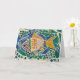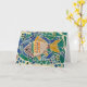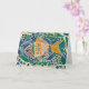 This card features a detail from a larger mosaic. It shows a colorful, whimsical fish in yellows, purples, blues, and greens on a white background. Blank inside.