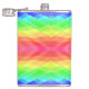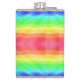 Colorful flask with abstract rainbow pattern of wavy lines in red, orange, yellow, green, and blue. Shiny silver cap on top. Bright and vibrant design.