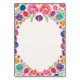 This Colorful Floral Botanical Fiesta Spanish Wedding Table Number design bursts with vibrant, hand-drawn flowers in a variety of bright colors, including shades of pink, purple, yellow, and turquoise, which form a border around the central space. The intricate details of the petals and leaves, along with small floral accents and greenery, give the layout a lively and joyful atmosphere. The overall look is inspired by Mexican folk art, with a festive and playful feel perfect for a celebratory occasion like a wedding.