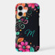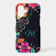 Make a statement every time you reach for your phone with this striking case, featuring vivid florals, swirling greenery, and playful heart accents set against a sleek black background. The bold, whimsical design blends cottagecore charm with modern flair, and the turquoise monogram adds a personalized touch. Click “Personalize this Template” to update the initial and make it your own.