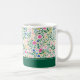 Enjoy your favorite drinks in fresh, preppy style with this personalized floral mug. Featuring a vibrant botanical pattern of pink, blue, and yellow blooms layered with lush greenery, this mug brings cheerful charm to every sip. The deep green accent band along the bottom showcases a personalized name in elegant script, adding a clean, custom touch that feels classic and refined. Perfect for coffee, tea, or hot cocoa, this mug blends everyday function with timeless floral style, making it a lovely addition to your kitchen or a thoughtful personalized gift.