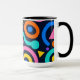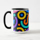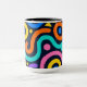 A lively mug design full of bold abstract shapes and vibrant curved lines inspired by modern pop art. The rich mix of yellow, teal, pink, and red creates a joyful rhythm — perfect for coffee lovers who crave creativity and color every morning.