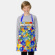 Beautifully colorful and cheerful little art deco flowers, to brighten the day, cascade over this pretty apron, perfect for for a kids' apron!