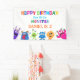 A cheerful little monster brings this banner to life with bold colors and playful charm, setting the perfect mood for a fun-filled birthday celebration.