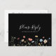 This colorful garden wildflower menu choice rsvp postcard is perfect for a rustic wedding. The design features seamless hand-painted burgundy, red, navy, blue, yellow, and blush wildflowers with botanical leaves in a black background.