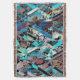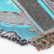 An intricate geometric pattern featuring a mix of triangles and lines. The composition includes a vibrant array of blues, pinks, and blacks.