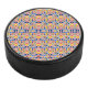 Colorful geometric pattern on a round Bluetooth Hockey Puck